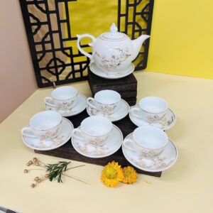 Bộ ấm chén gốm sứ là một sản phẩm có tính thẩm mỹ cao, được tạo ra từ những nghệ nhân Bát Tràng với sự khéo léo và tỉ mỉ.