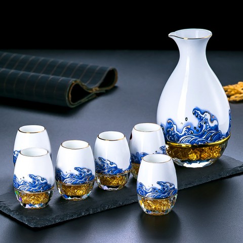 Bề mặt bộ bình ly là họa tiết sóng biển đặc trưng trong các tác phẩm gốm sứ phương Đông. Họa tiết vẽ tay tỉ mỉ được tô điểm màu xanh dương để ta được ngắm nhìn 1 bức tranh cổ điển đẹp mắt.